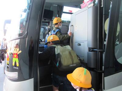 ワクワクしながらバスに乗り込みます。座席を確認しながら乗車もスムーズです。