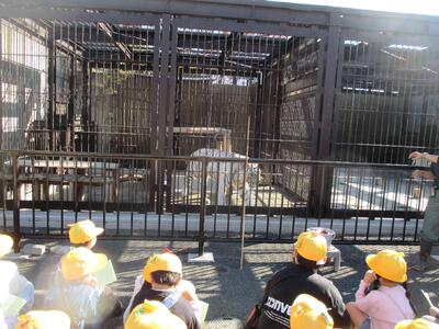 飼育員さんからホワイトタイガークイズが出されました。子供たちは、とても楽しそうにクイズに参加していました。