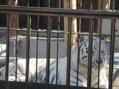 ホワイトタイガーは、立ち上がると2メートルくらいあるそうで、飼育員さんが餌をあげて立ち上がらせると