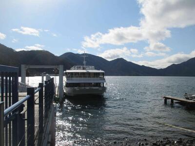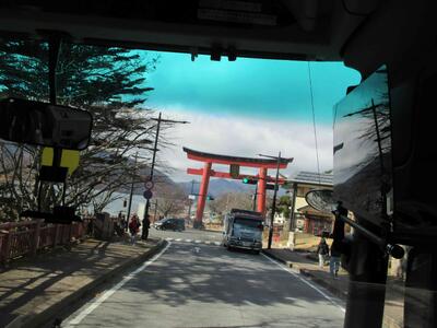 華厳の滝の見学を終え、次は中禅寺湖に向かいました。中禅寺湖の大鳥居が見えてきました。