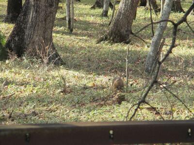 間もなくバスに着くという時、柵の向こうに子供のイノシシがいました。子供たちは大喜びでした。