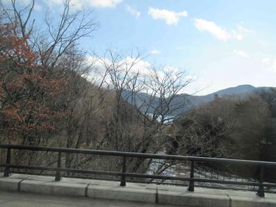 バスで戦場ヶ原に向かう途中、明日の見学地「竜頭の滝」の始まりの場所を通過しました。