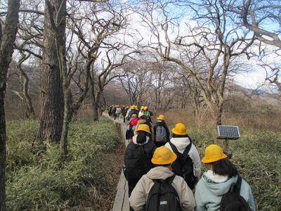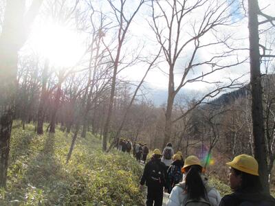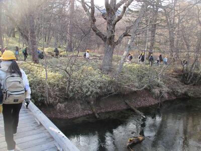赤沼からスタートしてゴールの湯滝に向かってみんなでハイキングです。