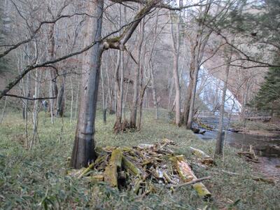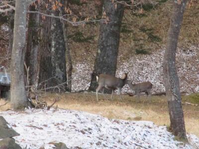 源泉の見学を終え、ホテルに向かう途中に2頭のシカを見つけました。