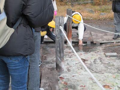 湯滝からバスで湯ノ湖に移動しました。ホテルに行く前に源泉を見学しました。