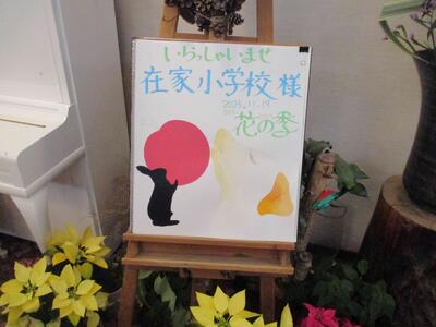 季節の花々に囲まれたロビーで素敵なウエルカムボードが出迎えてくれました。