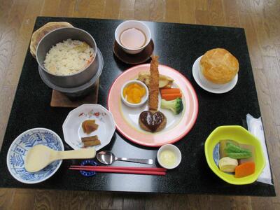 中禅寺湖で昼食をとりました。子供たちが喜びそうなメニューです。