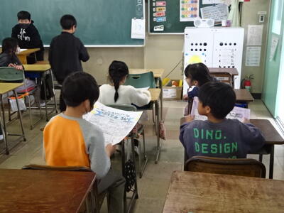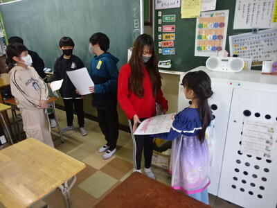 今日で仲良しグループ交流会が最後でした。最後は1年間楽しい遊びを考えてくれた6年生へ感謝の気持ちを下級生が伝える会です。5年生が中心となり寄せ書きや、最後の遊びを考えました。
